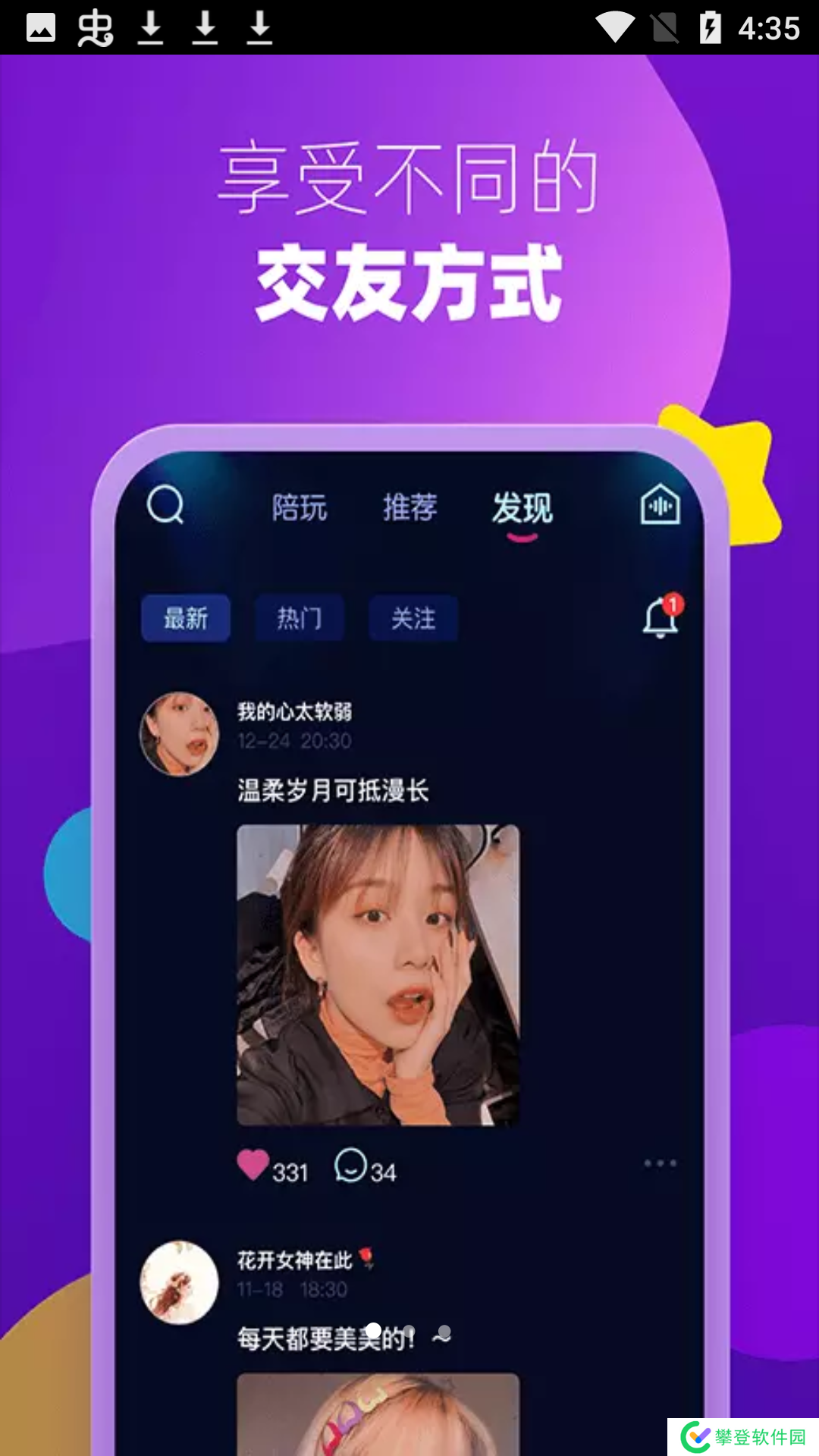 Miki软件特色1、最好的聊天模式推荐给你,动态广场信息推荐的还是挺全面;