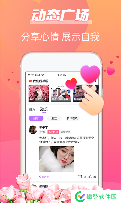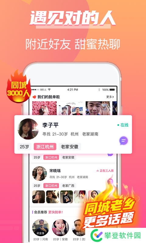 注重同城交友,这样可以更好地缩短用户之间的关系。你不仅可以在这里找到你的伴侣,还可以结交当地的朋友;这里有一群当地的朋友,他们都是你的同乡。你说的是同一种方言,你可以在任何时候见面聊天。很好的解决方案,单一,无聊的状态