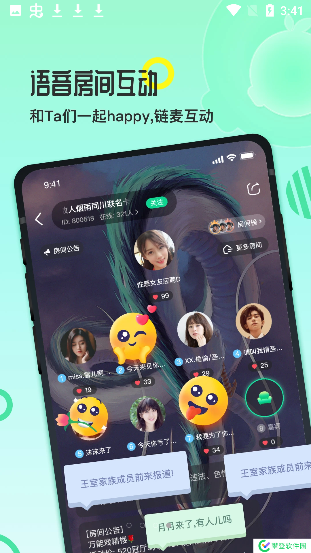 2.发现你中意的朋友,还可以和他们一起唠嗑聊天,唱歌,实时连麦;