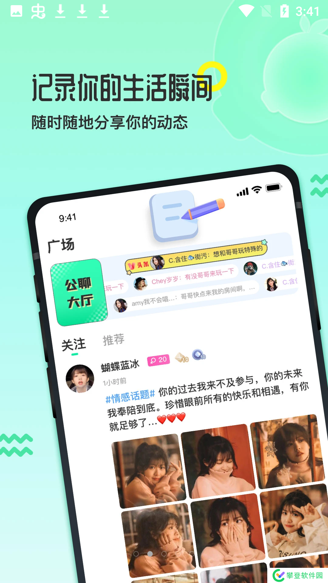 4、【动态广场】关注话题分享精彩瞬间,发布你的个人动态,找到合得来的人。