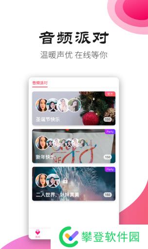 高品质的约会平台,有趣的灵魂。语音极客、游戏神、可爱女孩等,在这里,你可以通过配对找到你最喜欢的伴侣。你可以整天和主播互动。通过您选择的标签和爱好,有大量的兴趣主题室。用户可以自由加入多人聊天团队。