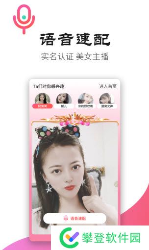 2,平台拥有超多的匹配机制,语音、视频、同城以及兴趣爱好的方式,让你快速的找到合适自己的妹子来说话。