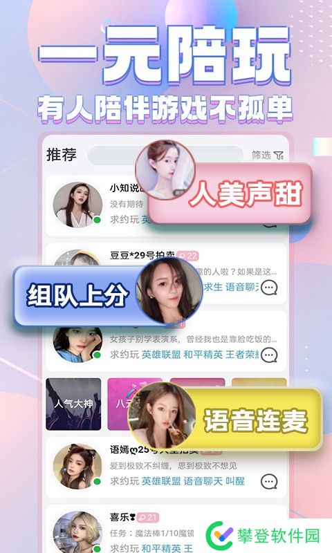 一元陪玩app优势1、专为电竞爱好者打造,各类热门手游全支持