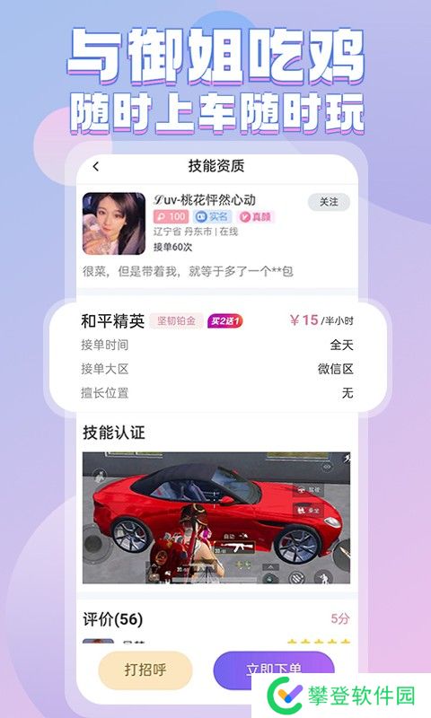 3、APP上汇聚了各个领域高素质技能大神,他们通过专业的技能,优质的服务来帮助用户获得更高更好的游戏体验