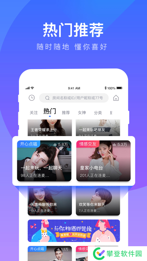 77爱玩app是一款2021人气上升的手机社交交友软件,在这里很多高颜值的小哥哥小姐姐等你来撩,很多陪玩等你来点,陪你线上语音聊天,陪你一起欢乐打游戏。此外,系统还能根据你的喜好,来推荐你大概率心动的人,有兴趣的可以来007游戏网下载体验吧。