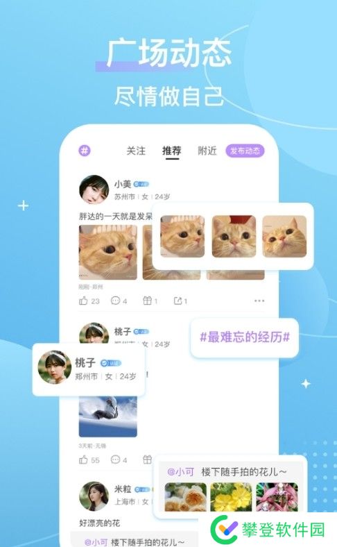 3、智能推送你关注的好友动态,展现自己的魅力,邂逅浪漫爱情。