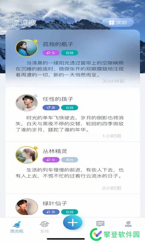 1:可以发送漂流瓶,可以捡漂流瓶,在这里你可以认识到来自五湖四海的朋友。