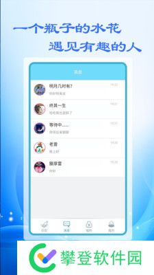想在每天的业余时间找到属于自己的异性好消息吗?你可以通过这个附近的漂流瓶软件交朋友。也许你能在这里遇到你最喜欢的女神。在这里,你可以通过漂流瓶互相聊天,了解对方,找到志同道合的朋友。这绝对是你交朋友的杰作。