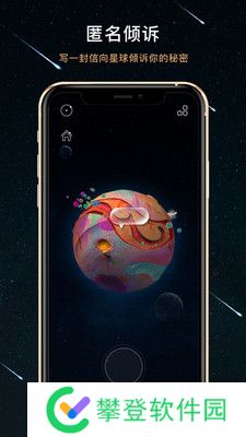 以宇宙漂流瓶为核心的匿名社交软件。在这里你可以把人生的悲欢离合写进漂泊的瓶子里,等待着那颗心相通的人。你也可以点击行星表面,穿过那里,建立一个临时的灵魂栖息地。