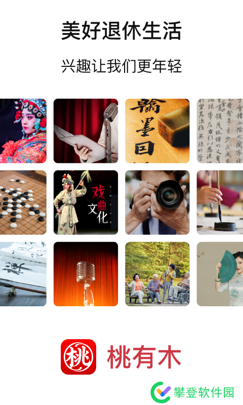 桃有木app是一款2021最新发布的手机老年兴趣交友平台,此软件致力于让老年人们获得一个美好的退休生活,因为兴趣让我们变得更加年轻。这里汇聚了有着各种不同兴趣爱好的人,有唱歌,跳舞,书法等等,根据自己爱好选择加入,交到更多朋友。自己如果对什么感兴趣,也可以找老师在线为你教学,赶紧来007游戏网下载吧。