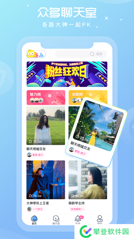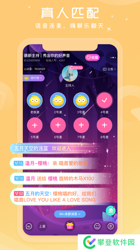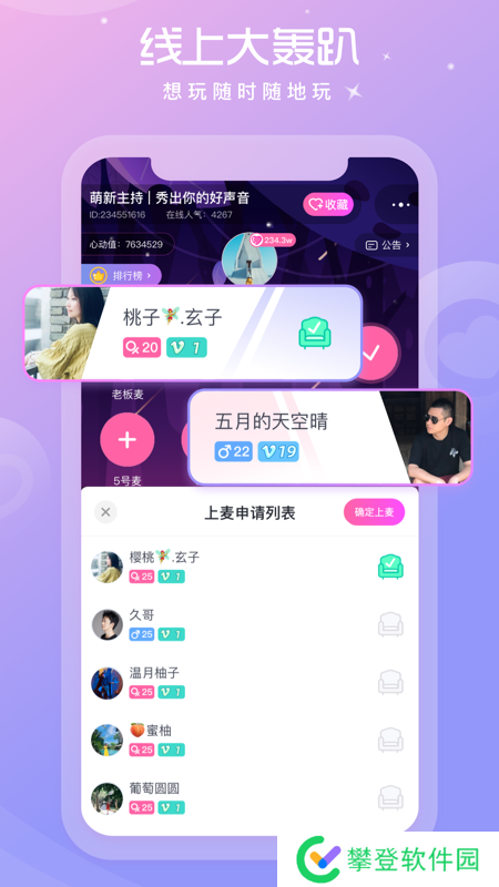 1、【语音聊天】超多语音房间可以恋爱、聊天、扩列、找陪伴,和心动的人说hello,快速找到更懂你的人;