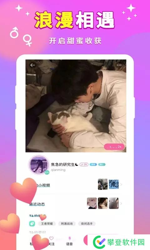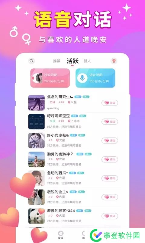 一对聊天app亮点1.在线支持各种有趣的交友方式。可以根据自己的兴趣爱好一键搜索匹配,全程在线互动社交。