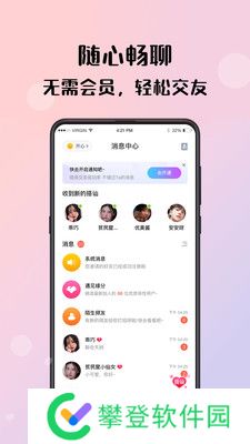倾友app:一块十分不错的手机社交聊天软件,我们此款倾友app上面有着海量的高品质用户和多种的手机社交方式,让你能够在线随时随地的即可交友互动,并且我们软件上面的所有用户都是经过在线的审核的绝对的安全放心,让你体验真实的陌生人交友的快乐,感兴趣的点击下载安装。