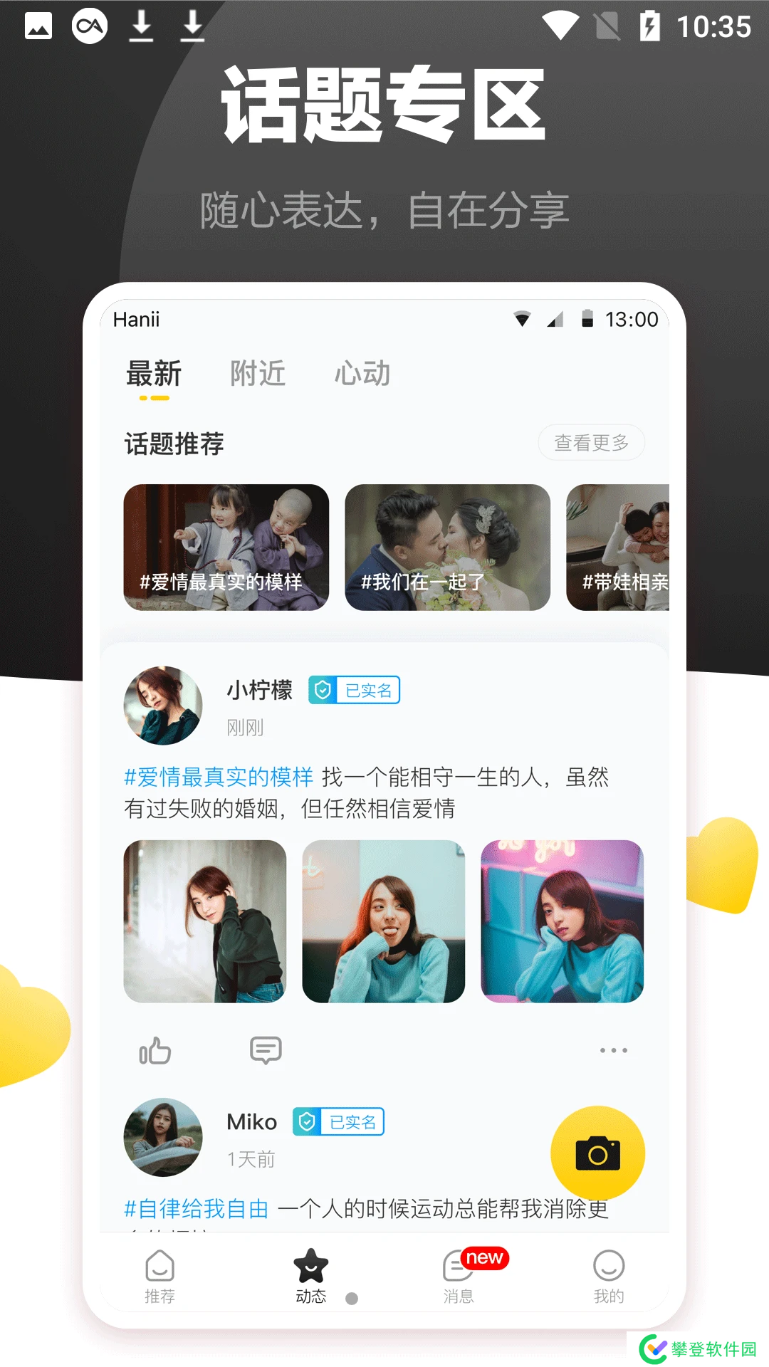 烟雨嘉人app是2021最新上线的手机社交交友软件,在此软件上你可以根据你的性格进行精准的匹配,让你尽快遇见自己的理想型,超多的话题专区,随心表达,自在分享,海量实名认证的用户,保证你能遇见自己的缘分,感兴趣的可以来yx007游戏网下载体验吧,你们一定会喜欢的。