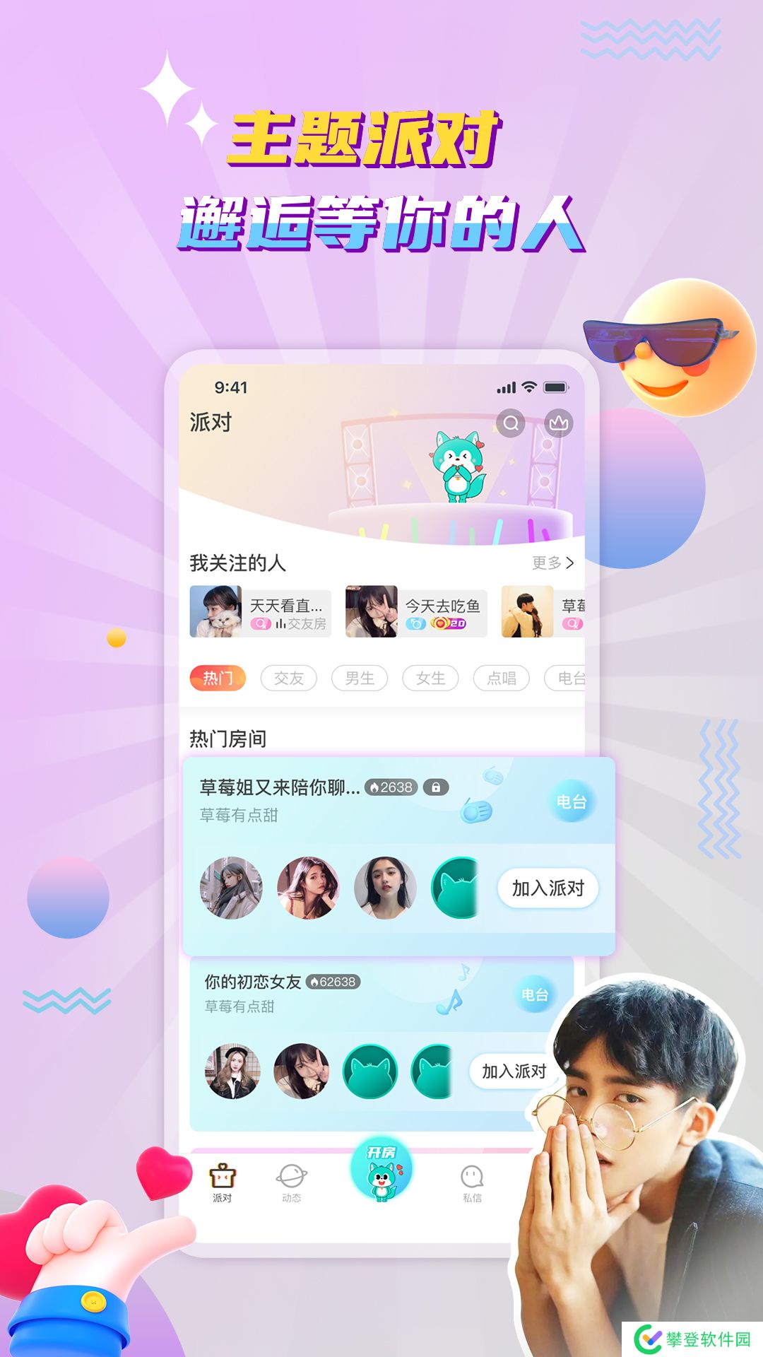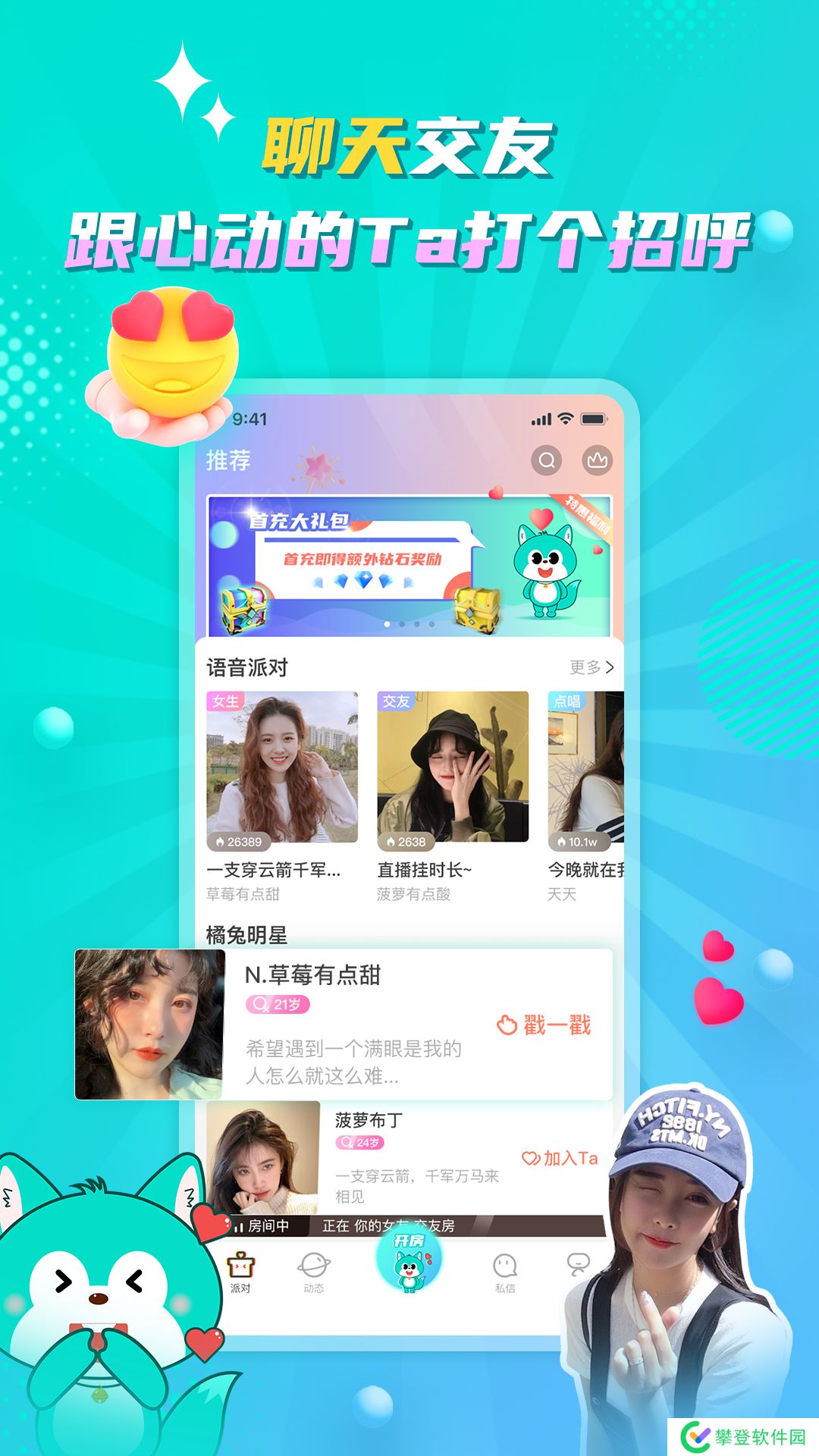 2、【娱乐聊天室】电竞、相亲、K歌、扩列超多超好玩的娱乐派对,让你不再是一个人;