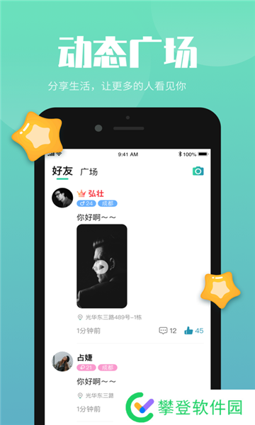 2、具有同城配对交友、同城群组聊天交友、动态广场交友等功能。