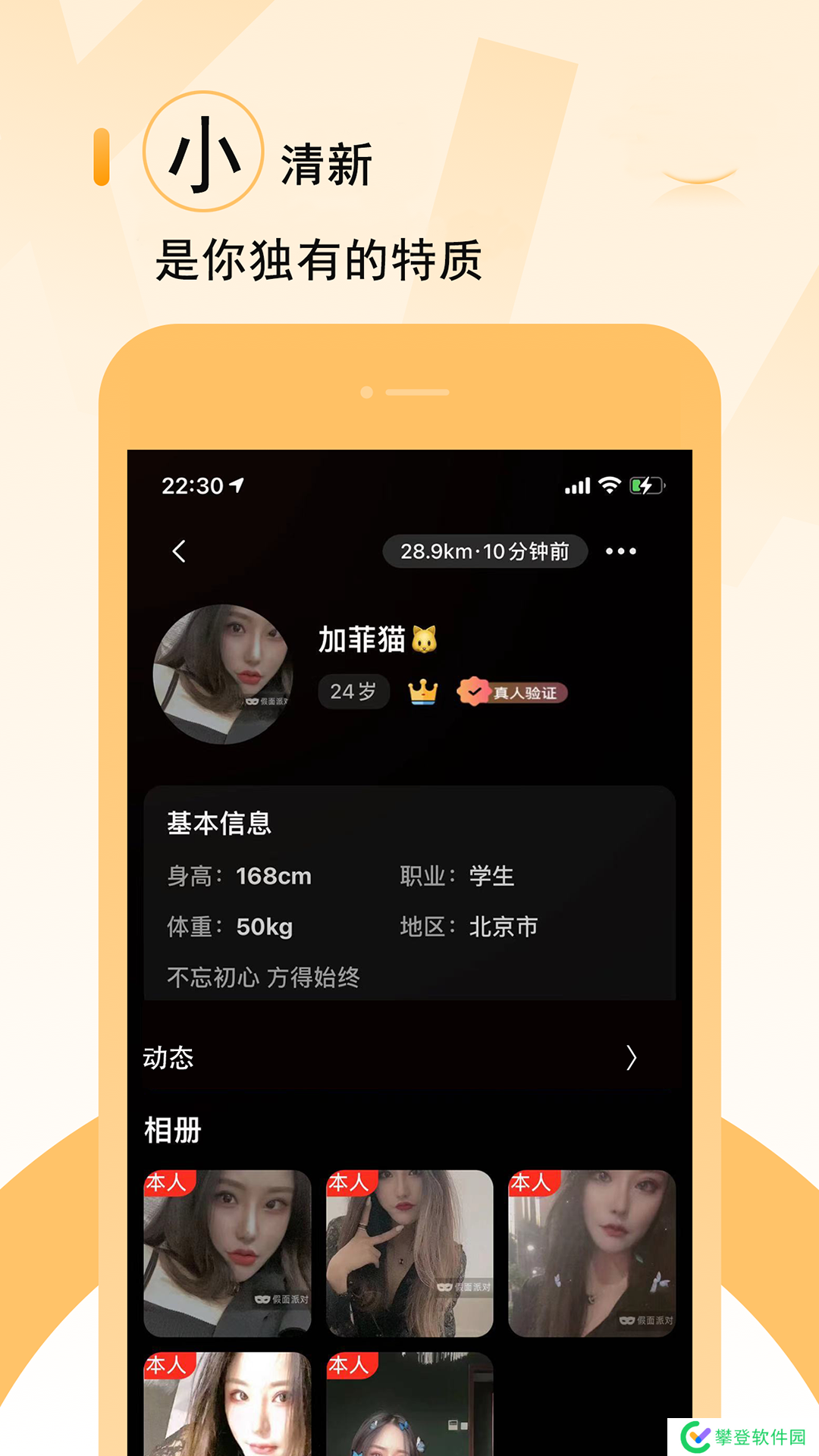 4.真人刷脸认证,颜值认证,实名认证,确保真实可靠,对假用户0容忍,社交环境高端安全。