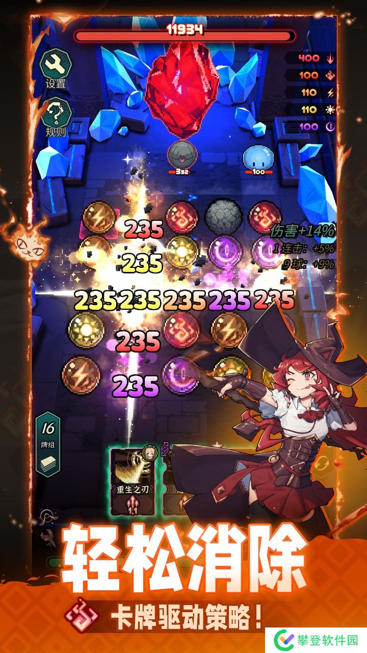 利用地城中取得的魔典构筑多样的卡牌战略。