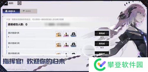 邀请回归指挥官登录游戏完成活跃任务,获取奖励。