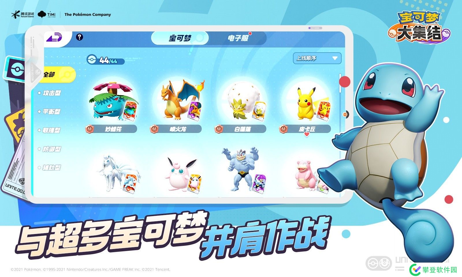 宝可梦大集结手游正版是一款MOBA对战游戏,游戏中玩家将会成为一名宝可梦训练师,通过释放宝可梦,操作宝可梦来展开激烈的战斗,玩家可以在游戏中通过组队进行策略配合,在5V5的团队战斗之中拔得头筹,可有通过养成来解锁更多技能。