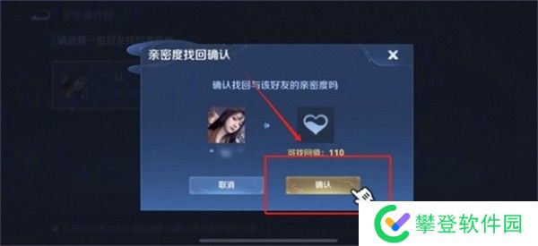 5、最后在弹出页面中,点击确认即可恢复和好友的亲密度