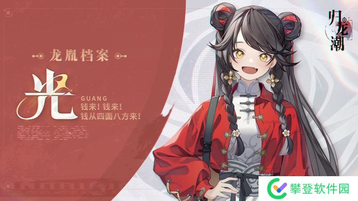 【光】:金属性虬龙阶角色,御三家之一,技能本身偏向于补充队伍伤害,高胤痕可以给队友提供金属性伤害加成,自身的专属龙咒可以增加下一个切出来的角色的暴击率,强度不是很高,并且金属性的输出【瑶瑶】强度也不是爆炸,培养的优先级都不高。