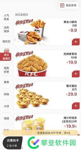 8.11肯德基疯狂星期四菜单有哪些?今天肯德基又迎来了本周疯狂星期四,很多小伙伴都非常想要知道今天的疯狂星期四都有哪些可以点的单?下面就一起来看看小编为大家带来的今天肯德基的最新疯狂星期四菜单分享吧。
