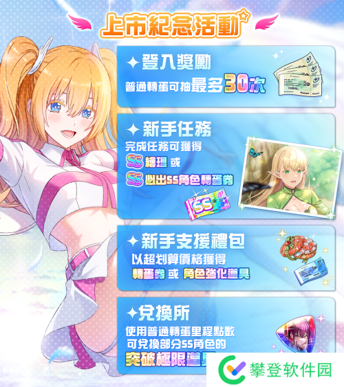 开服庆典火爆来袭!9月3日起,每日登录即赠转蛋券,累计可达30张。完成初心者任务,宝石、转蛋券及珍稀角色“眼中只有你”艾露芬绘理、SS角色必出券等你拿!新手礼包限时72小时专享。