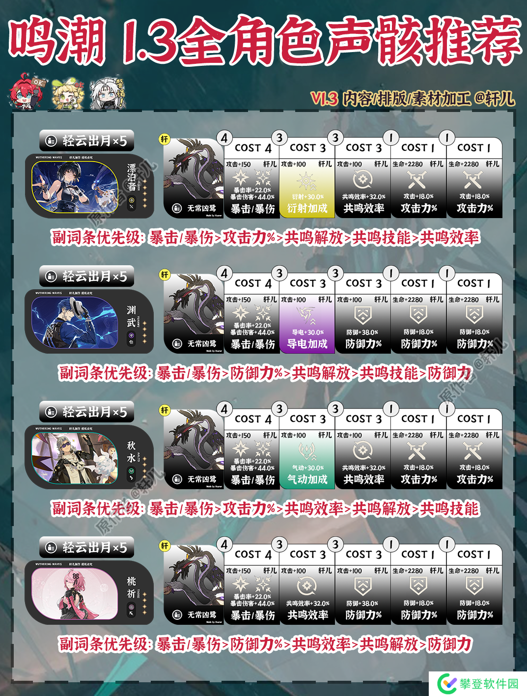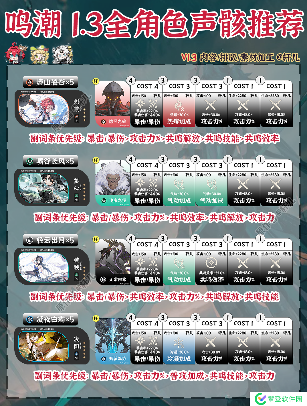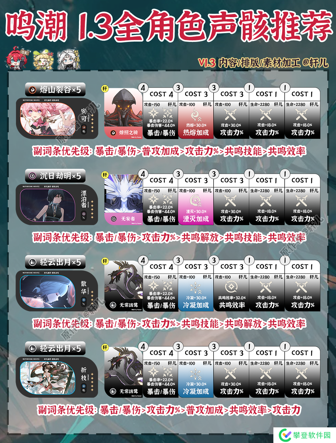 鸣潮1.3版本全角色声骸推荐出炉了,快来查缺补漏,看看哪些角色需要更换声骸~