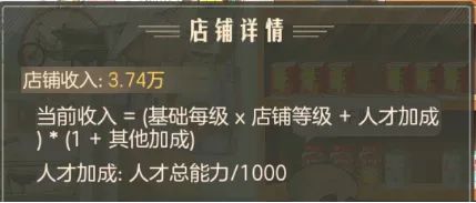首先我们需要明白的是店铺收入的计算公式:(每级收入 x店铺等级 + 人才加成)*(1 + 其他加成)