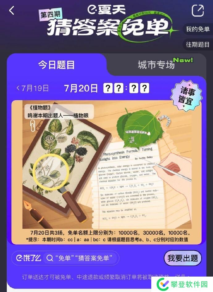 饿了么免单7.20今天的题目是有关于植物的,相信很多对植物没有过多了解的用户们一定会对这道题的答案比较疑惑,那么下面就让小编来为大家详细介绍一下饿了么免单7.20的答案吧,希望大家都可以顺顺利利免单哦!