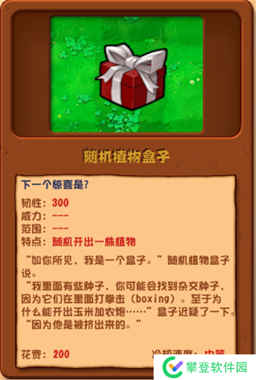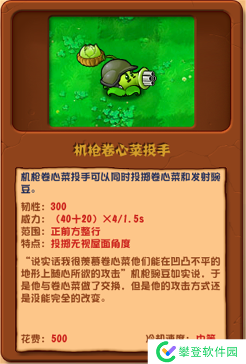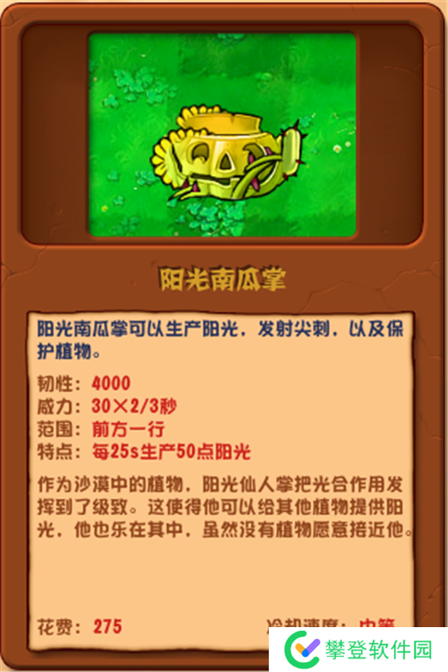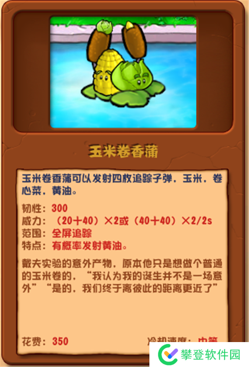 点评:硬度可观,对豌豆许愿池和香蒲类有奇效,战术辅助不可或缺。