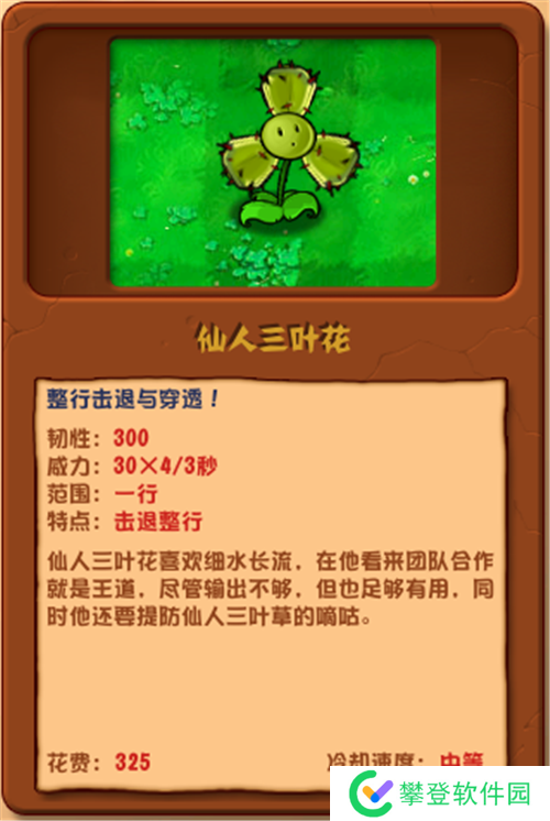 点评:伏地而生,虽能抵御僵尸啃食,但五向杨桃火力略显分散,期待未来强化。