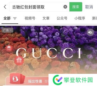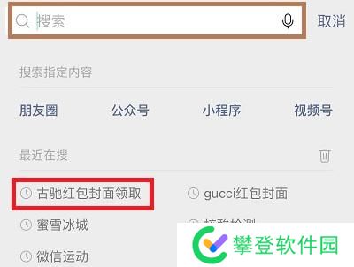 1、大家先进入微信,然后输入红包名,比如“古驰红包封面领取”。