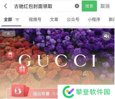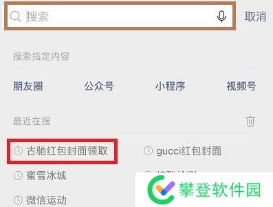 1、首先进入微信,再输入红包名,比如“古驰红包封面领取”。