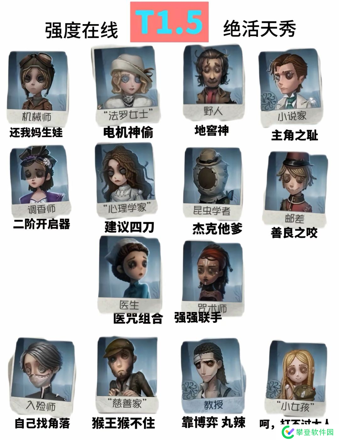今日带来的是《第五人格》手游中各角色的求生强度排行,新版本的主流选位参考本榜单即可,榜单从T0开始到T3依次进行排行。