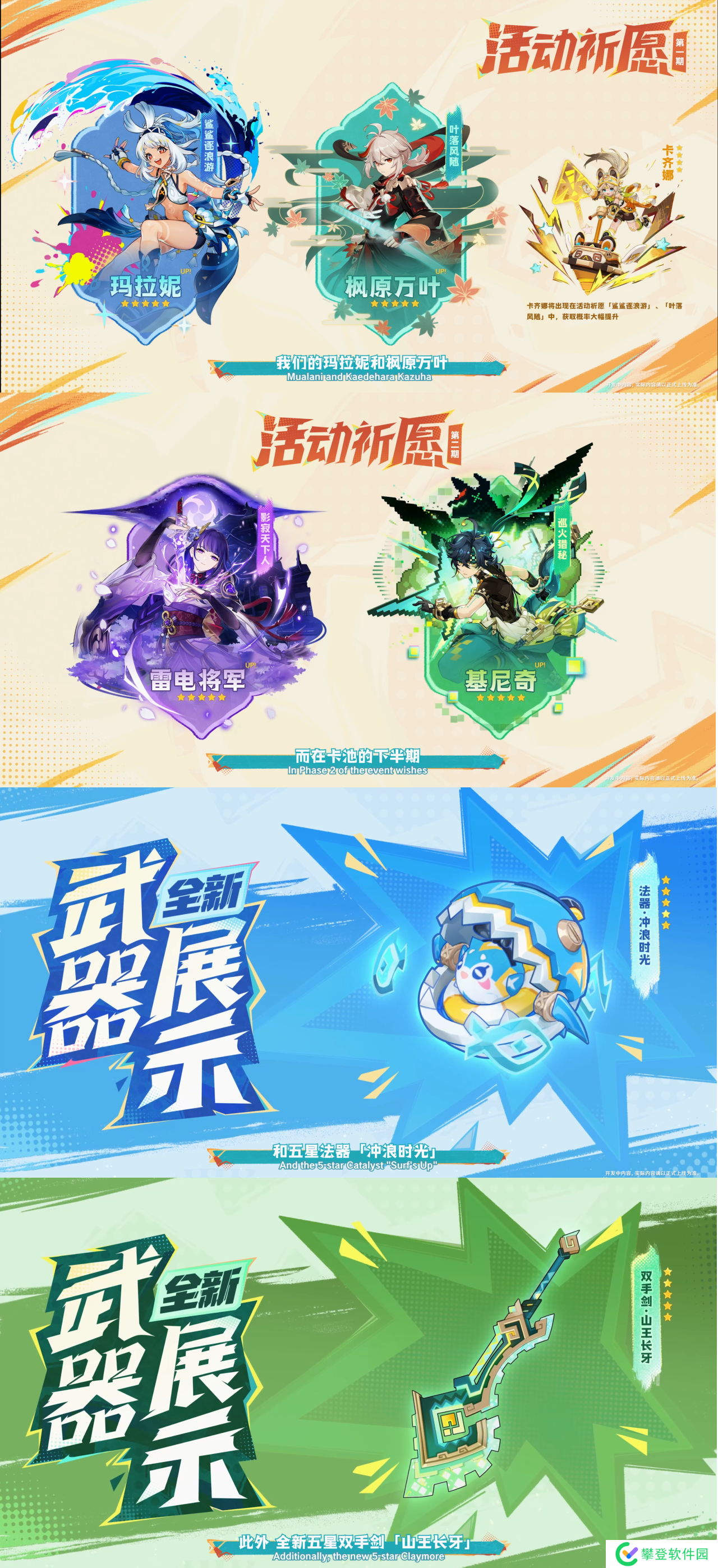 5.0版本新增的两个五星角色配套的五星武器也会同步实装。