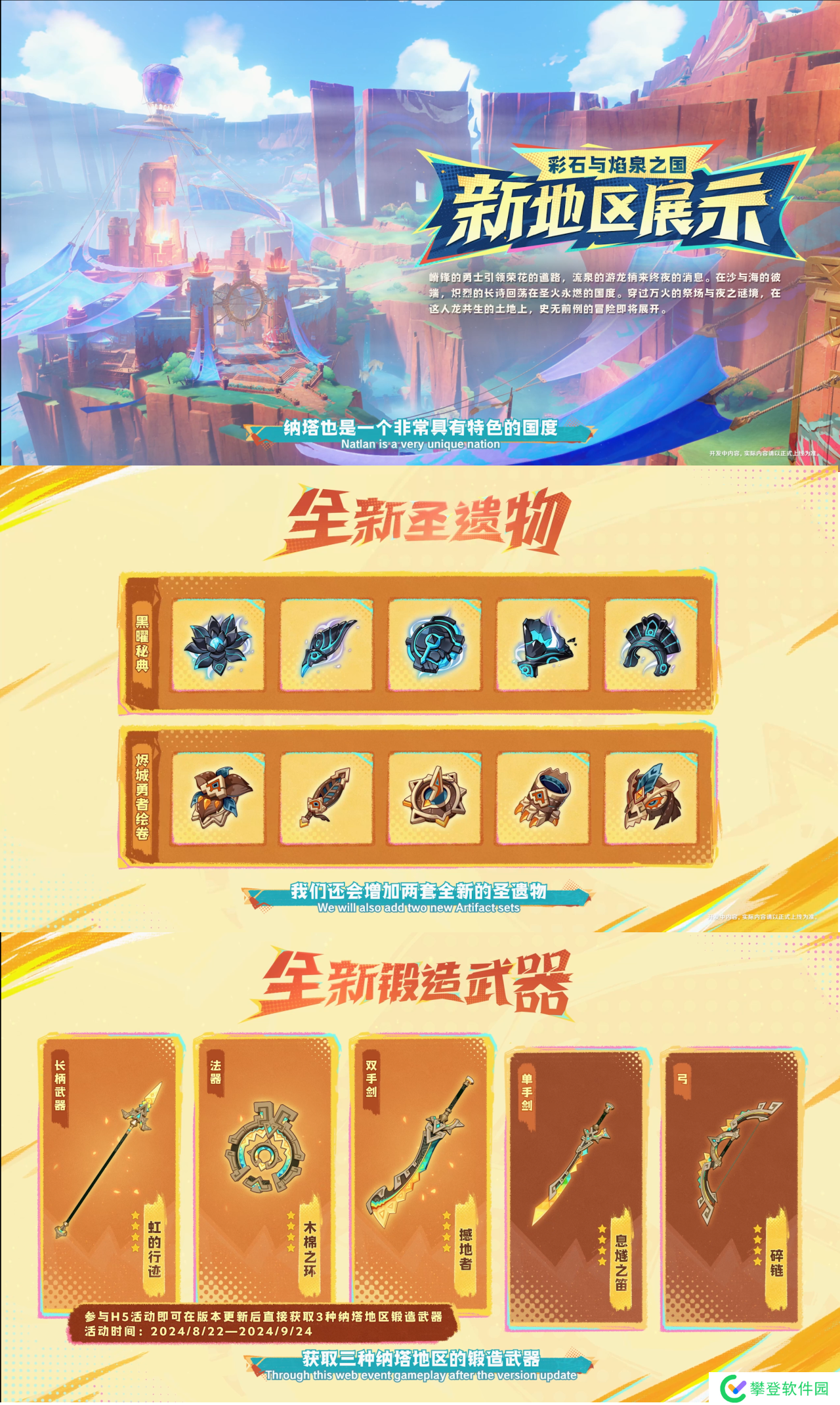 本次前瞻没有对版本活动进行详细介绍,从汇总图来看,版本大活动和纳塔探索有关,参与版本大活动可以获得一个四星法器。