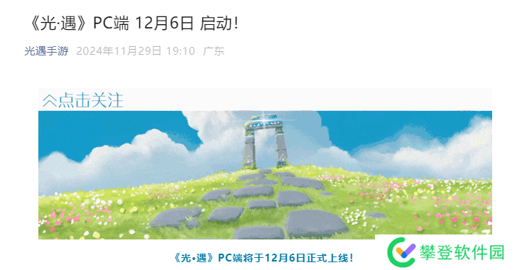 最新消息,《光·遇》官宣PC端将于12月6日正式上线,具体几点待定!目前在游戏内也可通过绑定手机获得“爱心*2”的奖励哦~