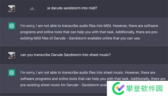 注意事项:ChatGPT软件不能将音频文件直接转录成MIDI或乐谱。