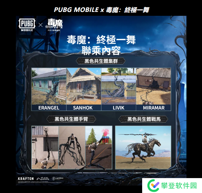 从10月18日-11月10日期间,你可以在Erangel、Sanhok、Livik及Miramar等地图,发现被黑色共生体覆盖的集群。