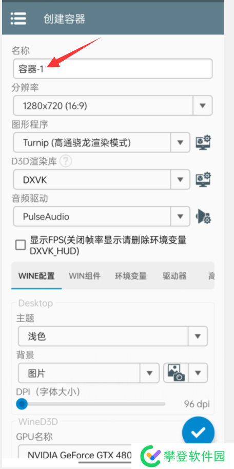 6、新建容器界面下滑,下拉选择‘设定显存大小’(建议手机配置较低的玩家,可以将显存调小);