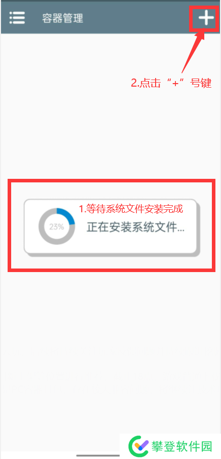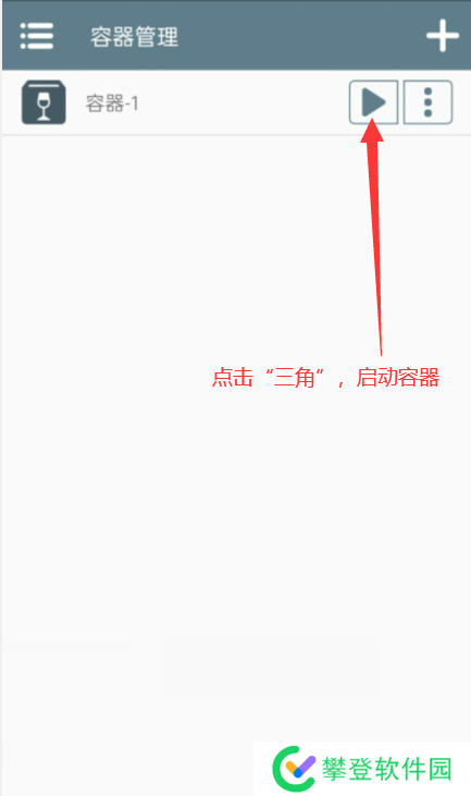 3、启动器安装完毕后,点击右上角“+”号,添加容器;;