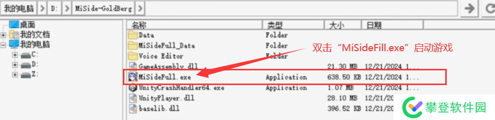 9、先点击D盘,再点击“MiSide-GoldBerg”文件夹(滑动屏幕使鼠标移动到相应的位置后双击屏幕);