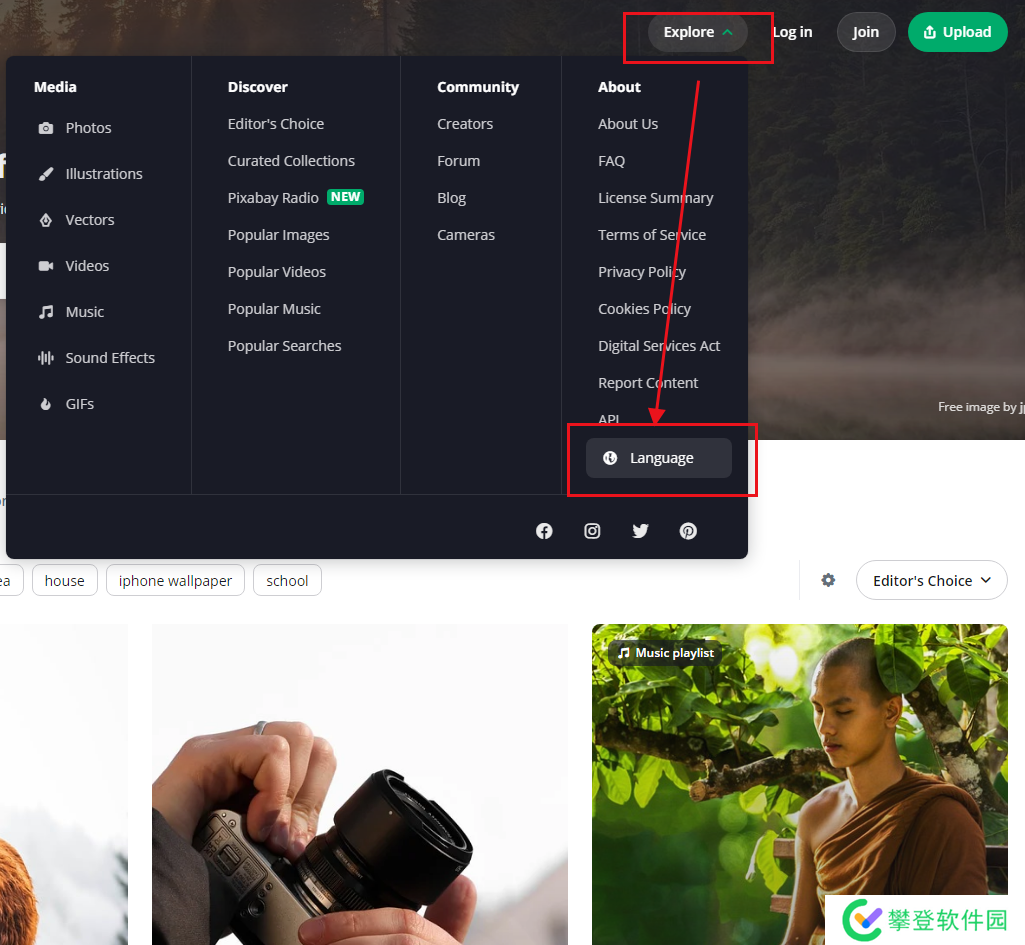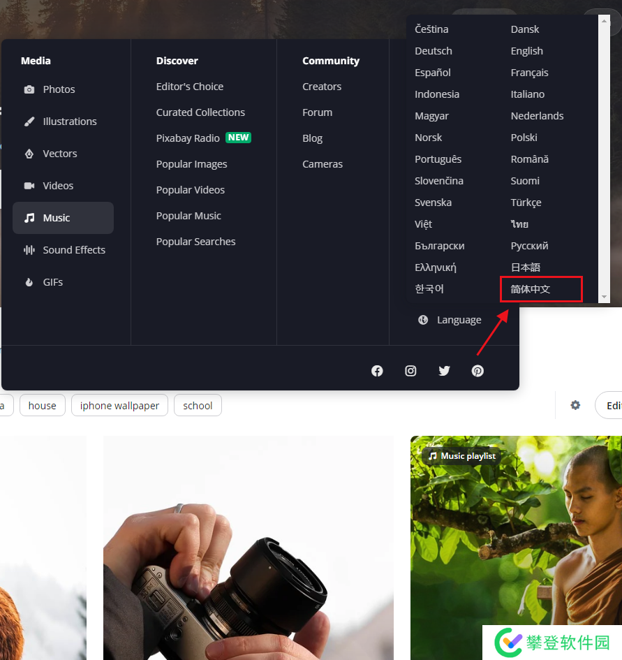 此外由于该网站为国外平台,默认语言为英语,用户可以手动设置为中文。