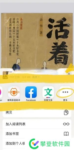 第三步:点击中间的分享的功能,也可以通过其他的app进行阅读。