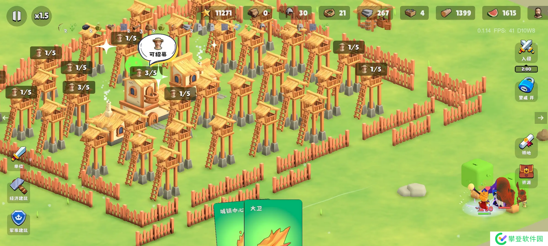 ②收集木材开完两块20的地后,点击入侵,花费木材延迟入侵时间直到上限。