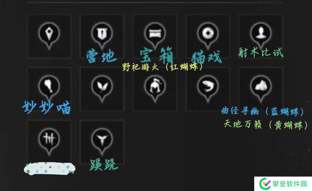蹊跷、妙妙喵、猫戏、营地、天地万籁、野祀游火、以武会友、悬壶治疗、话术论道、丝竹雅韵、投壶雅戏、射术比试