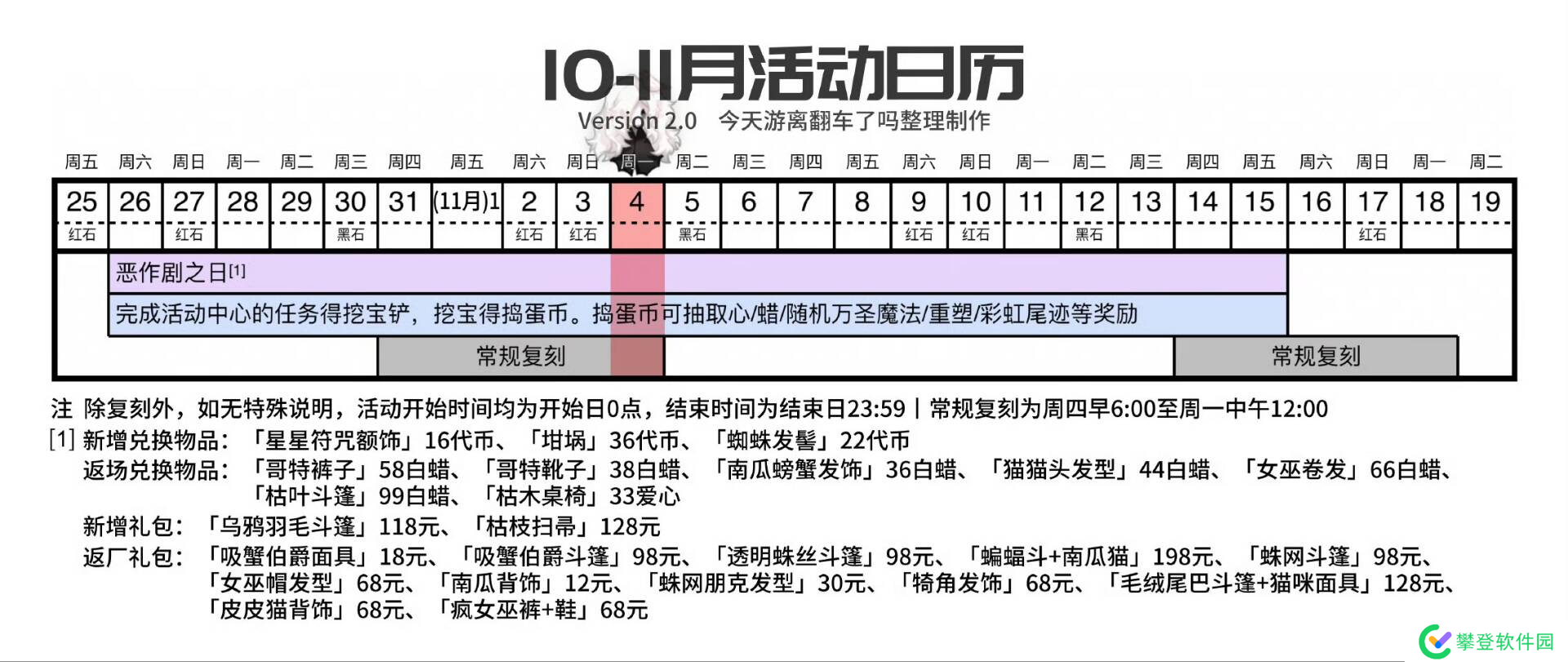 复刻时间:10.31 早6:00 - 11.4 午12:00