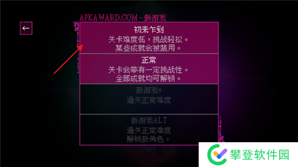 6、初来乍到,新手玩家建议从难度低的关卡开始玩,每个难度都有四个存档;